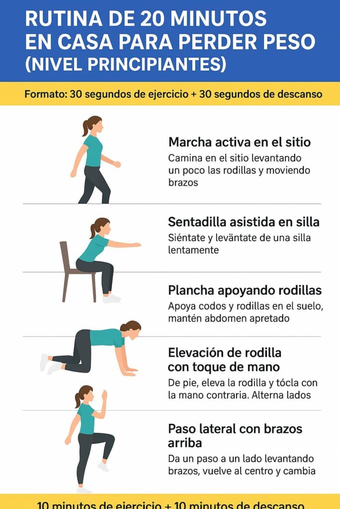 No necesitas un gimnasio ni hacer ejercicios imposibles: con una rutina sencilla de 20 minutos en casa, pensada para principiantes, puedes comenzar a perder peso, ganar energía y sentirte mejor contigo mismo/a.